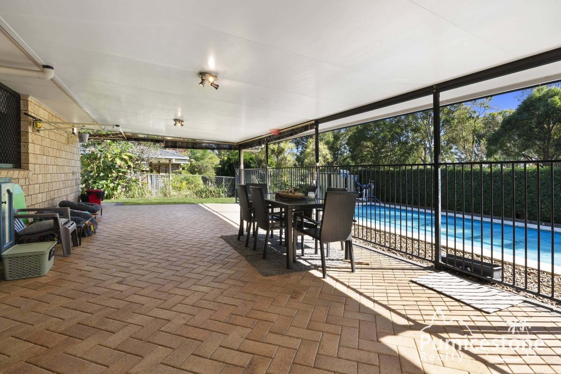 - Spacious undercover paved alfresco area overlooking the pool.