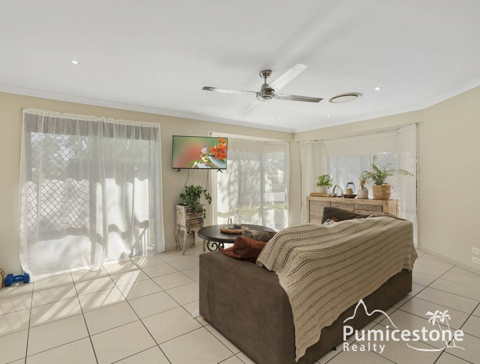 - Ceiling fans throughout.