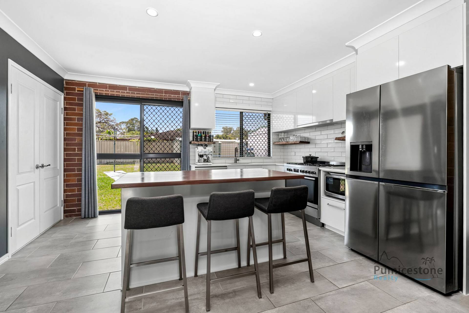 • Modern kitchen with commercial gas appliances and breakfast bar